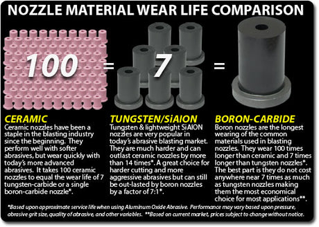 Nozzle, Slip On, Tungsten Carbide, Venturi, 1/4" Bore, Alum Jacket