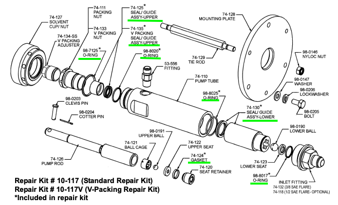 Pump disassembly. It is recommended that repair kit #10-117 be on hand before starting pump repair.