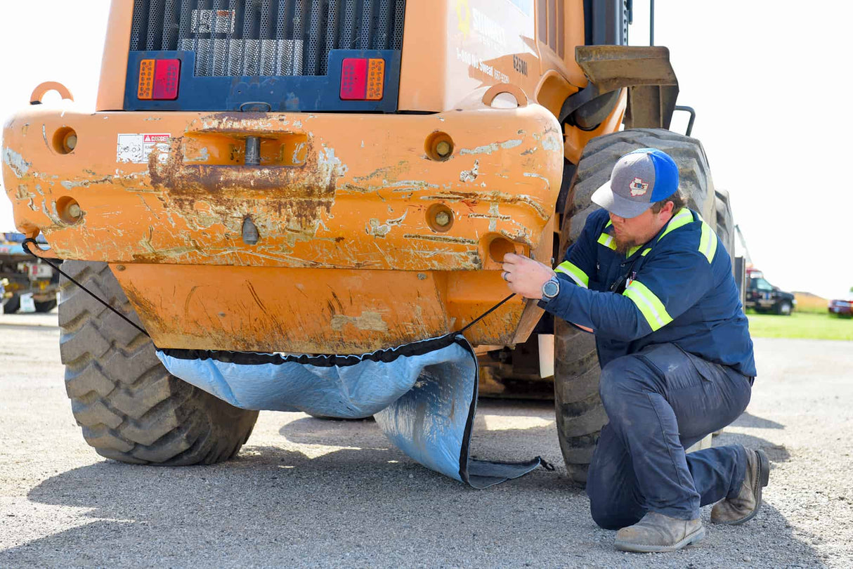 • Quick and easy installation - simply attach hooks to secure points on vehicle/equipment for proper placement under leaks or drips.