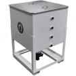 Description: GARNET HOPPER, BULK BAG, 45”L x 45”W x 70”H, CAPACITY: 5,400 LB (2450 KG), INCLUDES LIGHTWEIGHT ALUMINUM LID, 4" FAST-FILL™ BUTTERFLY VALVE, (4) 2" SIGHT GLASSES, FORK POCKETS, & WHITE POWDER COAT FINISH.