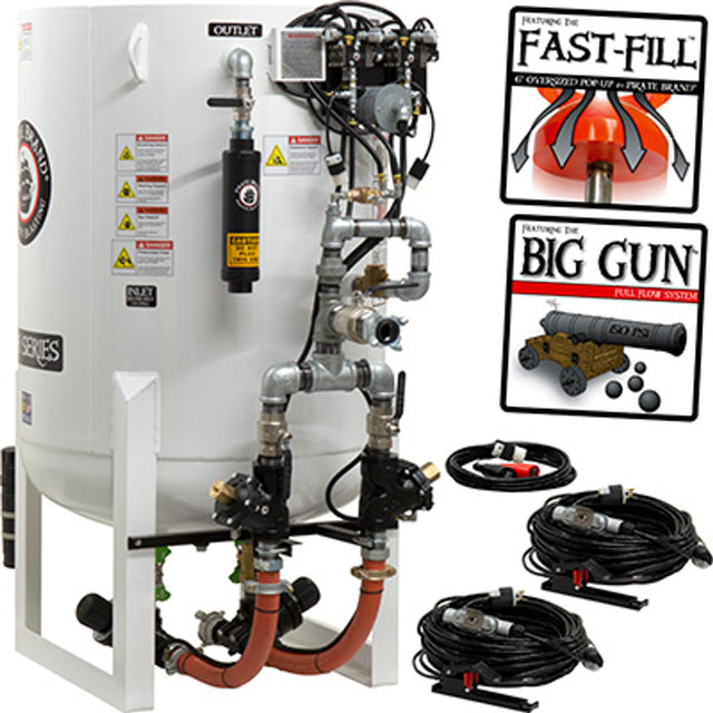 Pirate Brand, S-Series - 20 CU FT., DOUBLE OUTLET W/ ABRASIVE CUT-OFF (Cord Mounted) - Blast Pot, Stationary, Pressure HOLD System, 12VDC Electric Controls