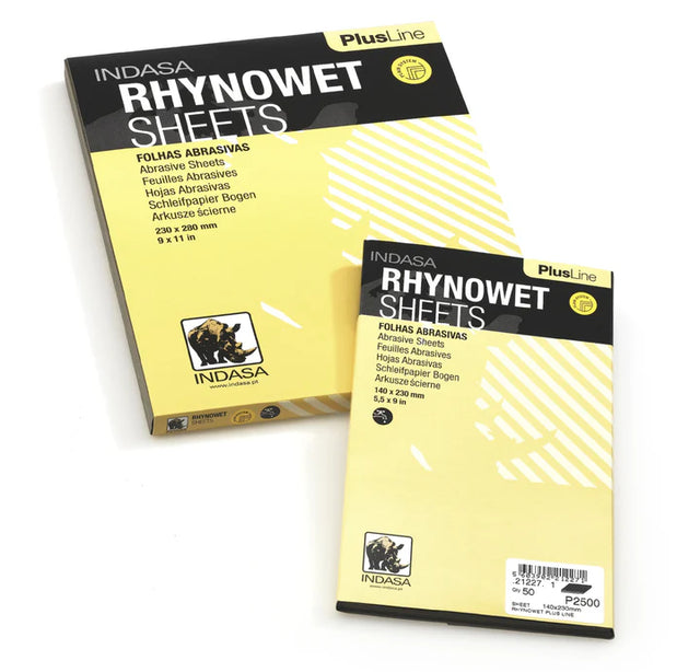 Description: Indasa PlusLine Rhynowet Wet and Dry Sanding Sheets (1 & 2 Series) feature a waterproof, anti-slip latex backing made of light weight yet durable backing papers. The result is an abrasive sheet that offers both high flexibility and high quality finish.
