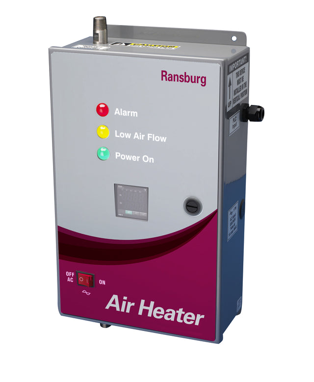 In automated finishing applications, the expansion of pressurized air causes cooling which may result in condensation on surfaces of electrostatic applicators. The Ransburg Air Heater Assembly is designed to reduce or eliminate condensation that may form in or on the Ransburg TurboDisk and Rotary Atomizers, or other pressurized applicators under certain operating conditions.
