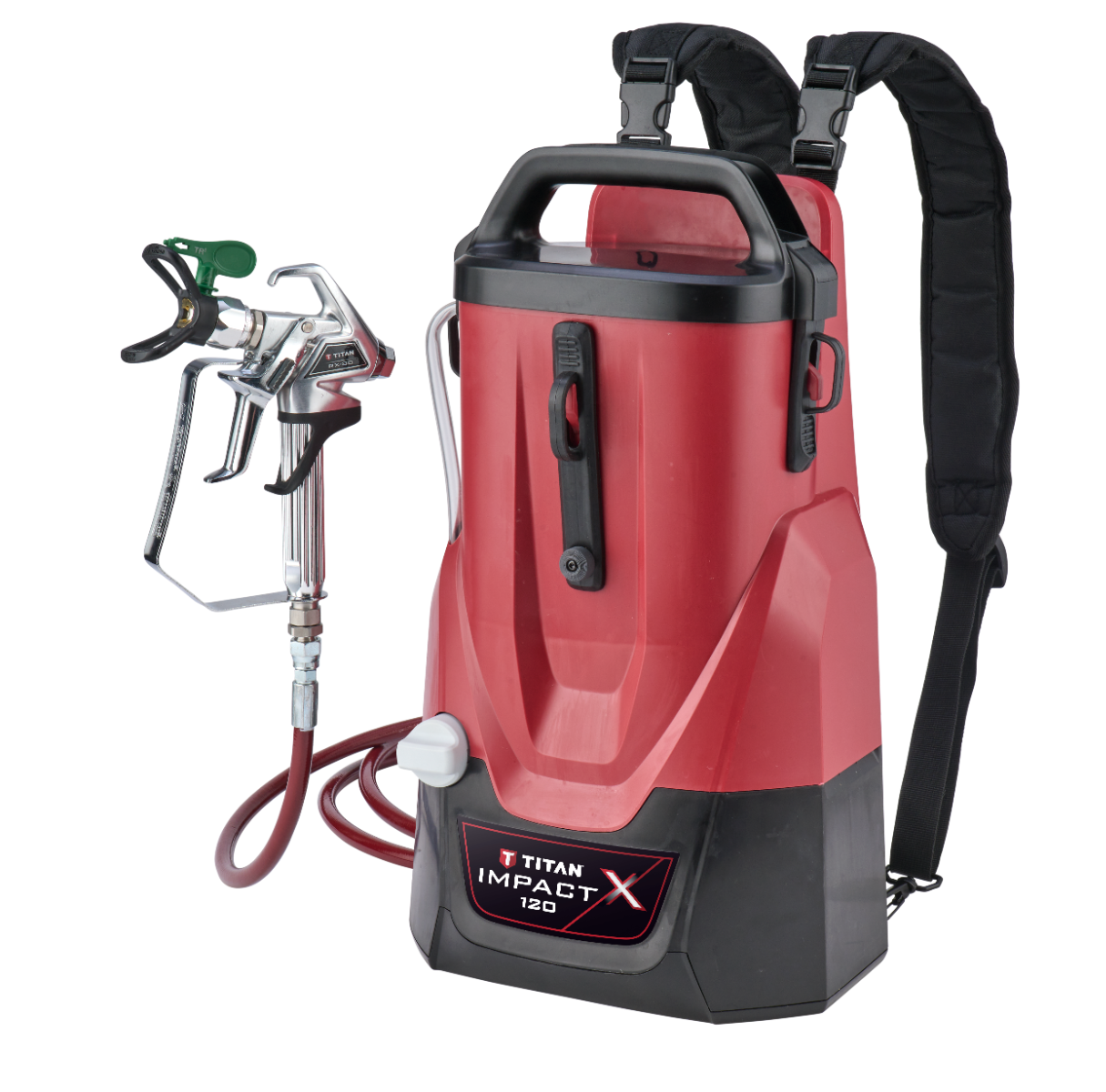 Description: Step up to industry-exclusive portability, flexibility, and comfort with the Impact X 120. Optimized for Low Pressure Airless use and featuring three operational configurations so you’re ready to go no matter what the job calls for. Powerful AMPShare™ by Bosch® 4Ah battery delivers up to 1400 square feet of coverage per charge on a single battery system that works across multiple Titan sprayers.