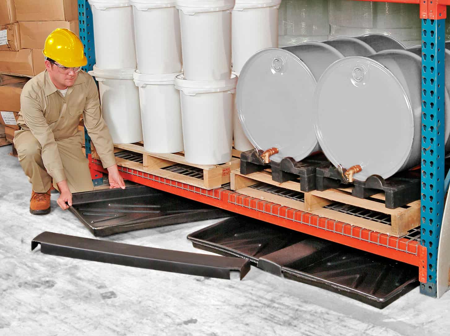 Industrial racking (steel racking, pallet racks, etc) is everywhere. They are the shelving units of the industrial world. So it only stands to reason that there will be some applications where liquid (or other materials that might leak) is stored on racking.