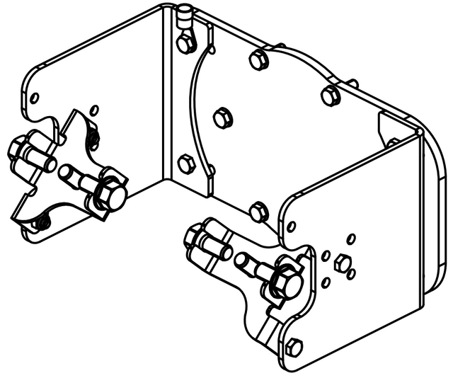 Robot holder PEA-X1 TO (twin outside) for attaching two PEA-X1 basic guns with gun holder and routing the cables and hoses on the outside of the robot.