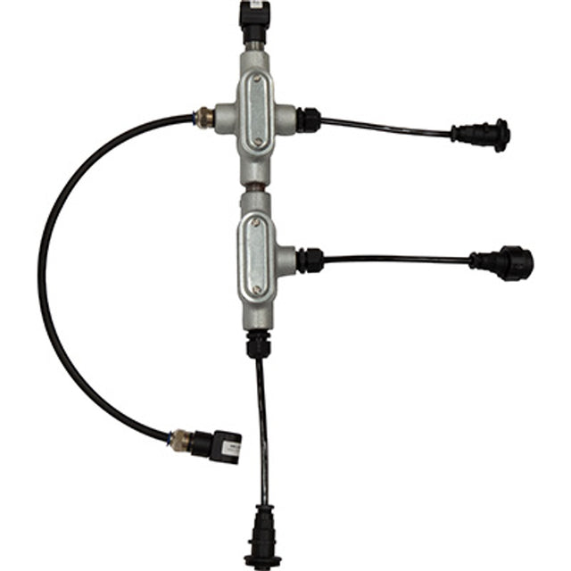 Pirate Brand - Schmidt Mfg Style, Junction Cross/Tee Assembly, Small & Bulk Blasters, 12VDC, SSACO w/ Sealed Waterproof Connectors, (1) Outlet