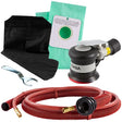 This sander kit includes coaxial air line and vacuum hose, dust bag, Rhynogrip 3" 3-hole grip backup pad (432938) and pad wrench. It may also be connected to a central/shop vacuum for dust removal (shop vacuum hose not included).