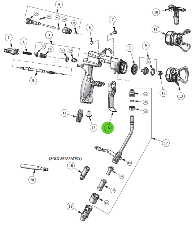 Description: Short pull trigger for Trophy AA 1600 / 4400 air assisted airless spray guns. Note: this is an alternate/accessory item and not the original trigger.