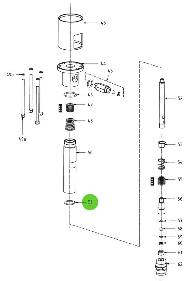 Description: Seal O-Ring #51 for the Medusa™ high pressure piston pump.
