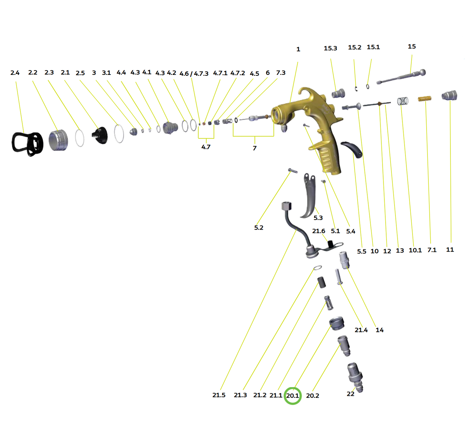Descripción: Conjunto de copa y tuerca para pistola pulverizadora manual AIRMIX® XCITE®+. Ref. N.° 20.1