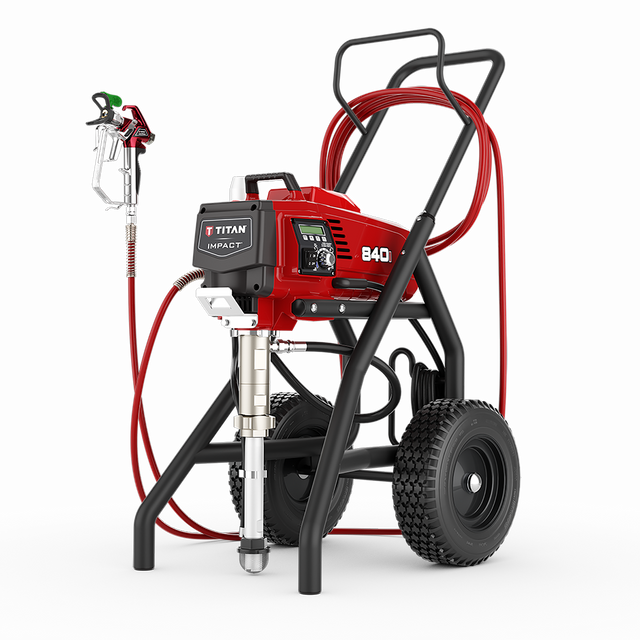 Description: As the projects get more complicated and the work day draws out longer, it's time for the Impact® 840, a sprayer with more features and versatility. Recommended for medium and some large residential, commercial and industrial projects where a wide range of coatings - from stains to block fillers - are being applied. Now available with IntelliSync® Technology powered by Bluetooth® wireless technology to connect to the MyTitan app for ultimate control