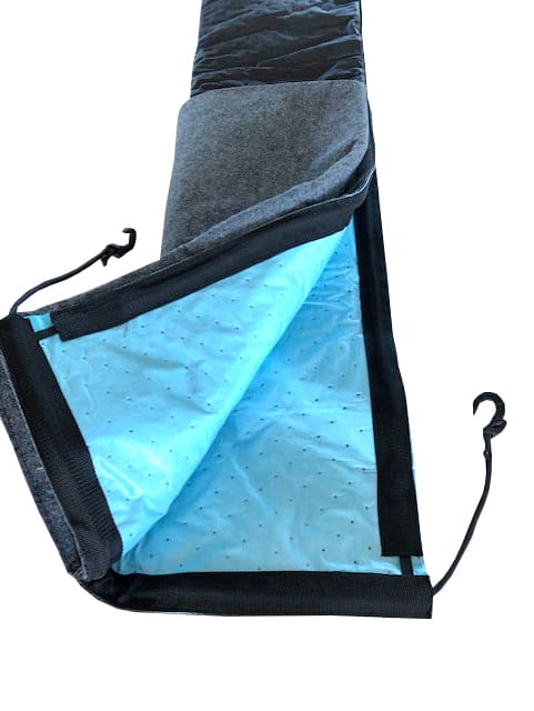 - Quick and easy installation - simply attach hooks to secure points on vehicle/equipment for proper placement under leaks or drips.