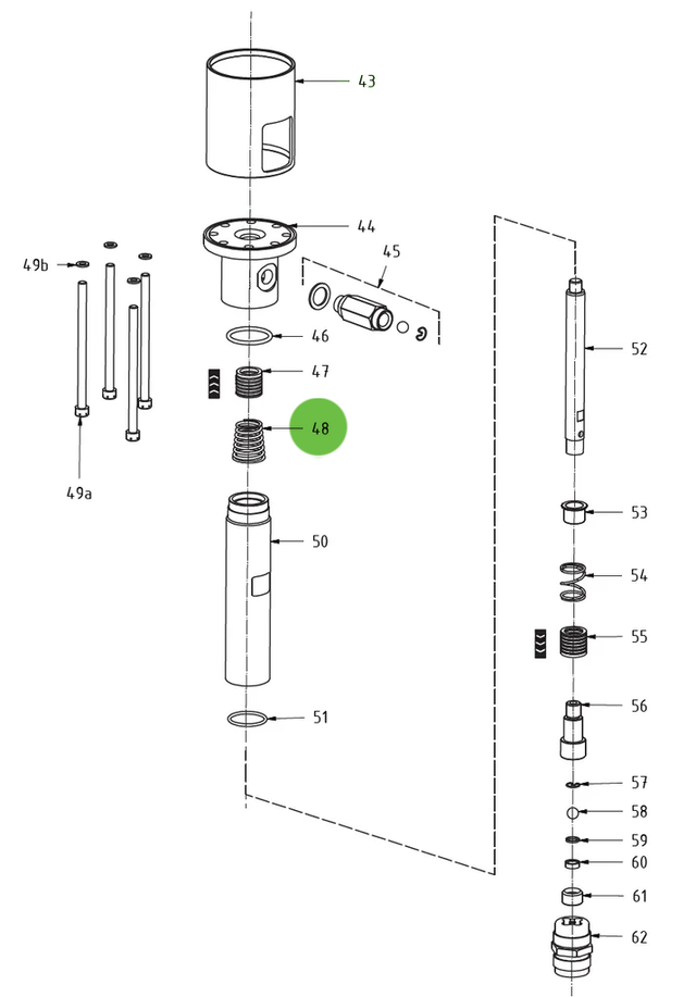 Description: Conical Spring #48 for the Medusa™ high pressure piston pump.