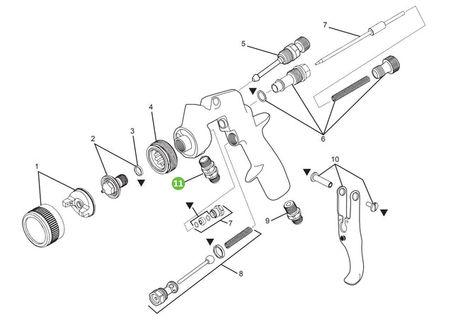 DeVilbiss FinishLine FLG-4, Siphon & Pressure Gun, Fluid Inlet & Nut Kit JGA-4044