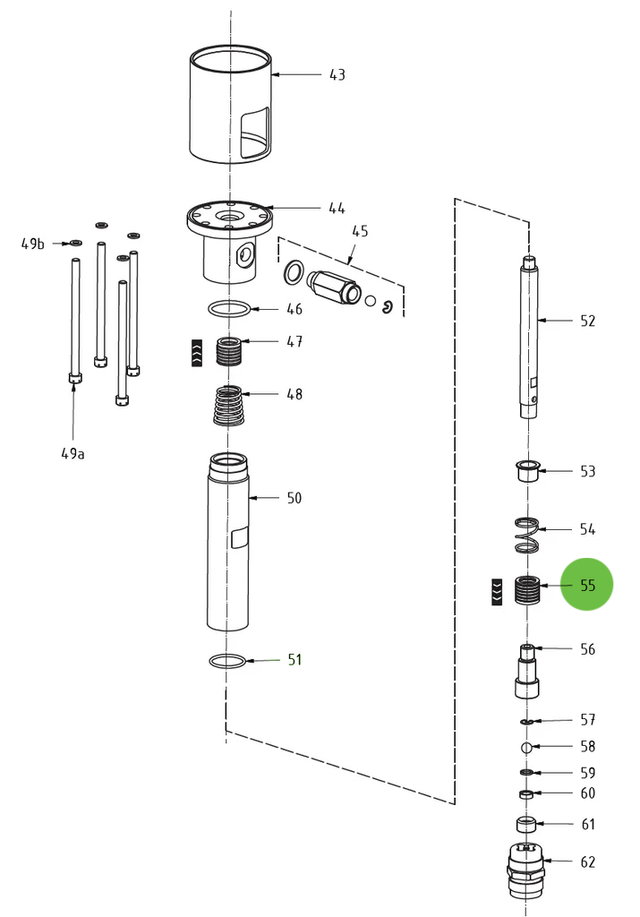 Description: Lower Packing #55 for the Medusa™ high pressure piston pump.