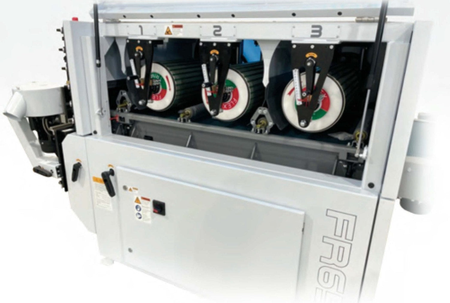 Description: Complete set of 45mm tall 320grit replacement sanding strips for the Motimac FR365. The 3 top brushes have 30 x 365mm long strips each (90 total). The two side brushes have 24 x 100mm long strips each (48 total).