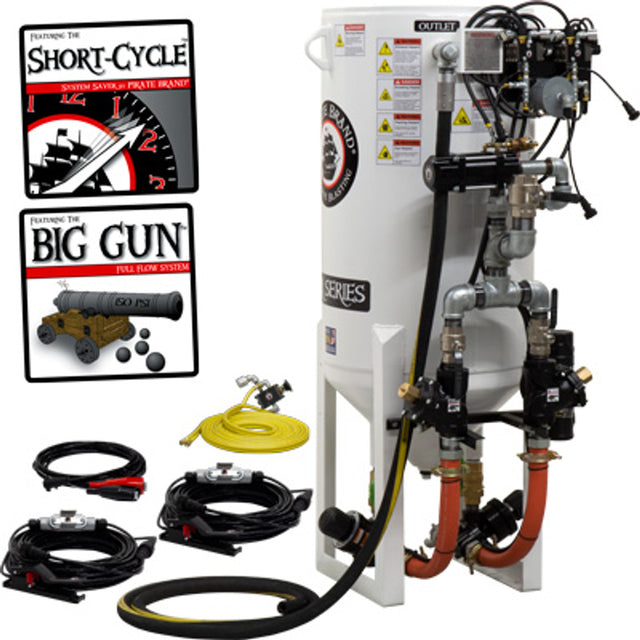 Pirate Brand, S-Series, Short-Cycle™ Series - 10 CU FT., DOUBLE OUTLET W/ ABRASIVE CUT-OFF (Cord Mounted) - Blast Pot, STATIONARY, Pressure RELEASE System, 12VDC Electric Controls