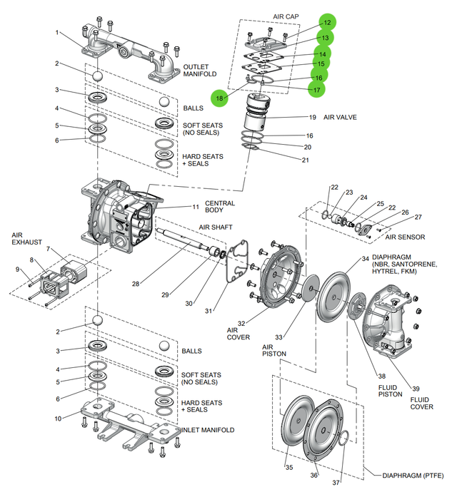 Description: Central Body Air Cap Kit. For the UP10 Pivot Series 1" Metallic Air-Operated Double Diaphragm Pumps